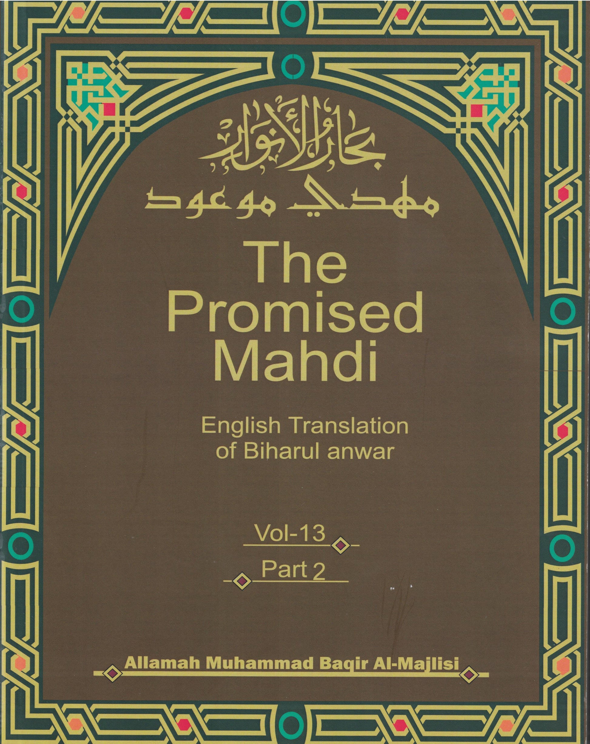 The Promised Mahdi is the complete English translation of original thirteenth volume of Biharul Anwar, corresponding to volumes 51, 52 and 53 of the 110 volume set, which is in print today
